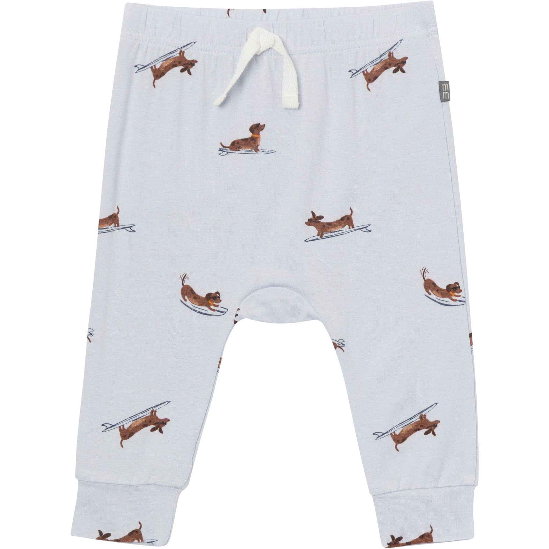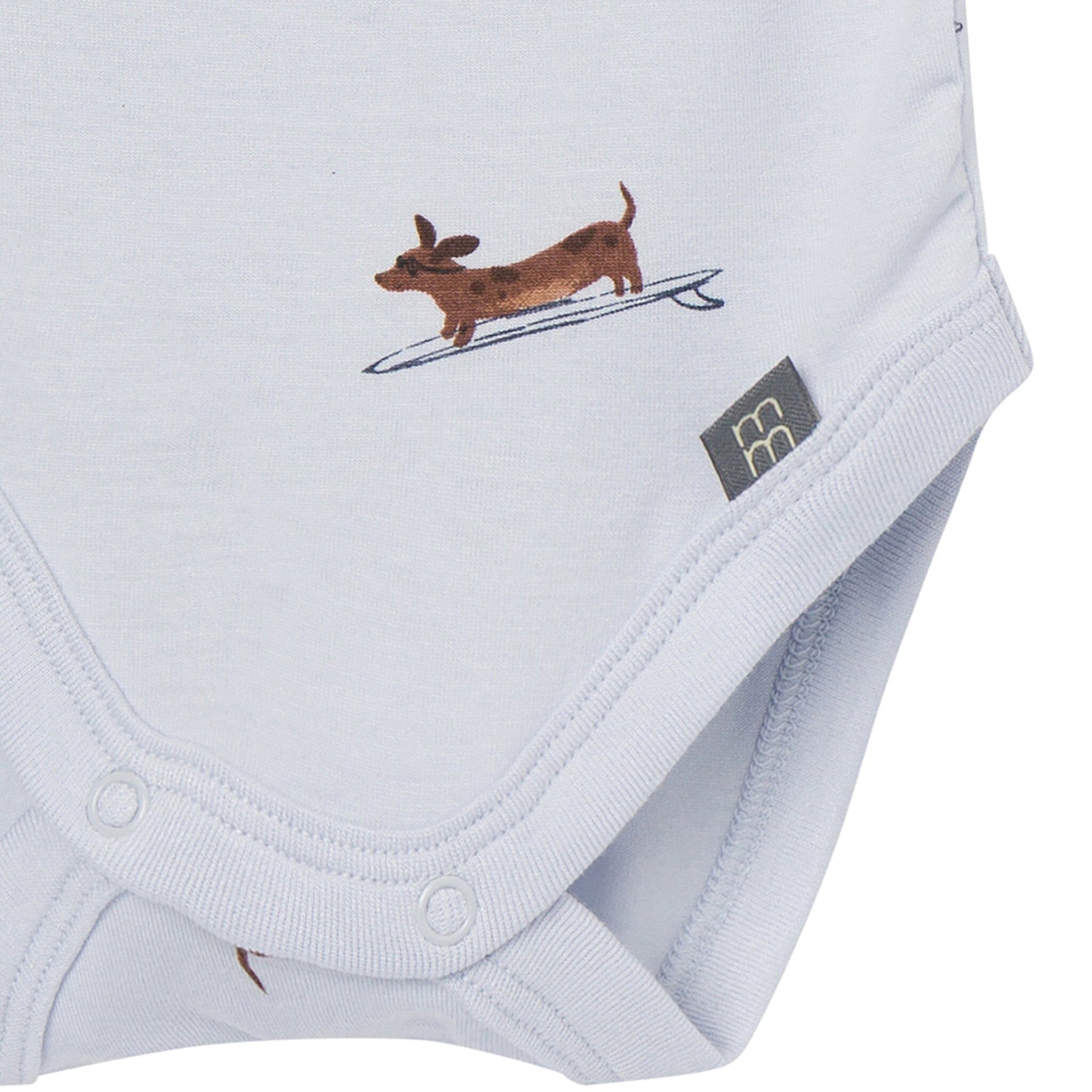 • Light blue with surfing dachshund print, solid blue with vertical ribbing