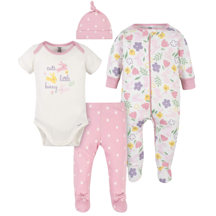 Gerber® Organic 4-Piece Baby Girls Bunny Take-Me-Home Set
