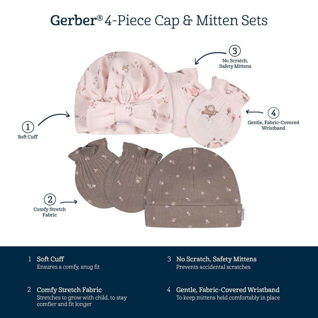 Thoughtfully designed for newborns, this 4-piece set brings softness, warmth, and style together. The breathable 100% cotton fabric feels gentle against delicate skin, with a cozy drop needle knit for added comfort. Caps help keep little heads warm, while mittens provide protection with a snug yet gentle fit. A sweet bow detail adds an extra touch of charm, and the versatile colors make mixing and matching easy. Ideal for first outfits, baby showers, and everyday wear, this set is a must-have for little ones. Plus, it’s crafted with Better Cotton™, supporting a healthier planet for the future. Our essentials have been independently certified with STANDARD 100 by OEKO-TEX® so that you don’t have to worry about harmful substances in your little one’s wardrobe. Pack includes two caps and two mitten sets.