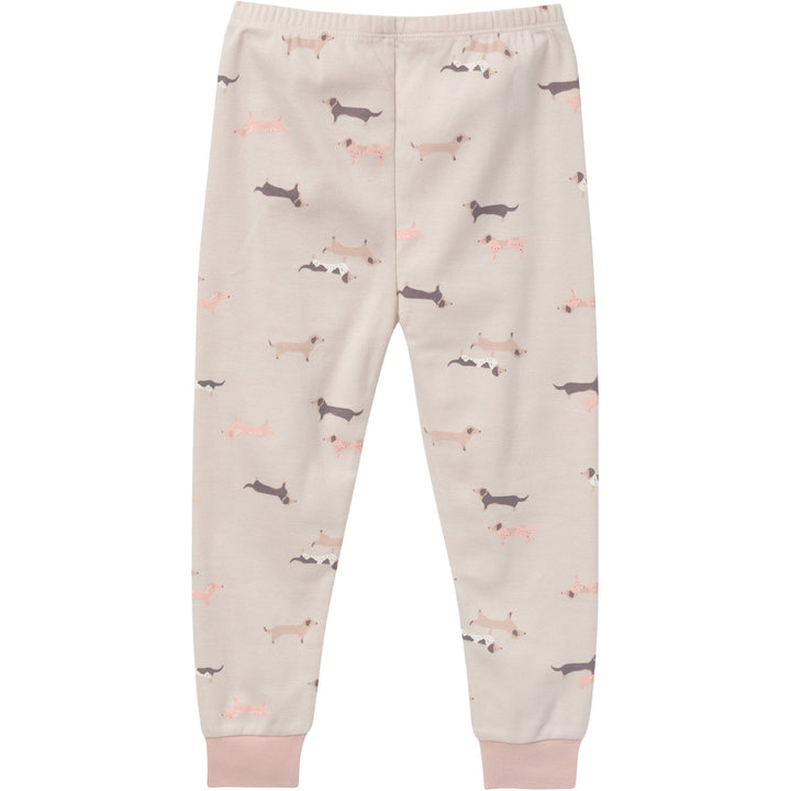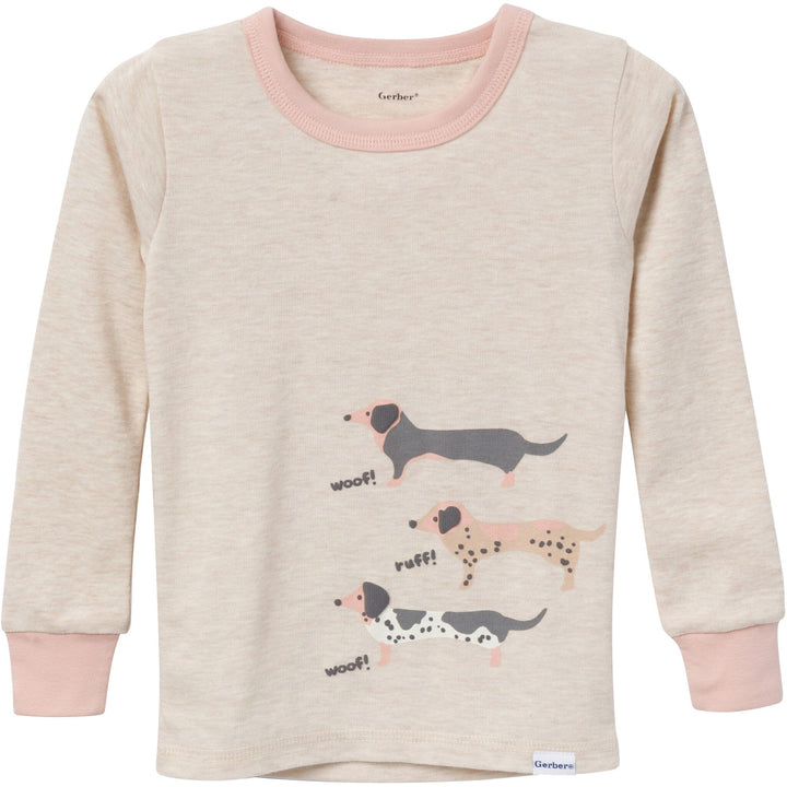 Comfortable, cute pajamas help get your baby or toddler the essential sleep they need after a long day of play. Made primarily from soft cotton, our 2-piece pajama sets offer a breathable feel to keep your little one snug and cozy all night. Each set features spandex trim at the neckline, wrists, and ankles, providing a flexible feel that adapts to your child's movements, while the comfort-stretch waistband ensures an easy and secure fit all night long. Designed with a tight-fitting style for safety, the set includes one short sleeve and one long sleeve version, both decorated with playful dog-themed prints. These pajamas make bedtime comfy and fun, perfect for winding down after a day of adventures. Our essentials have been independently certified with STANDARD 100 by OEKO-TEX® so that you don’t have to worry about harmful substances in your baby’s wardrobe. Pack includes two pajamas tops with two matching bottoms.