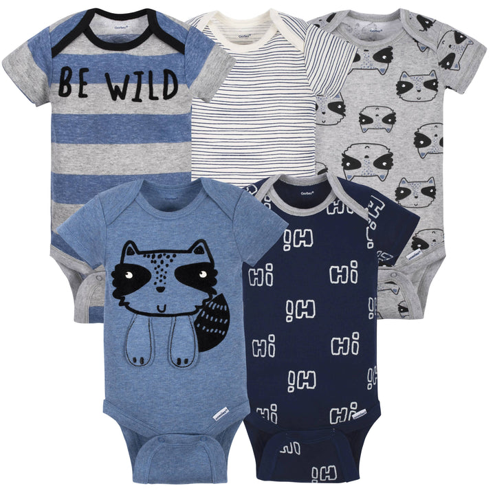 5-Pack Baby Boys Raccoon Short Sleeve Onesies® Bodysuits