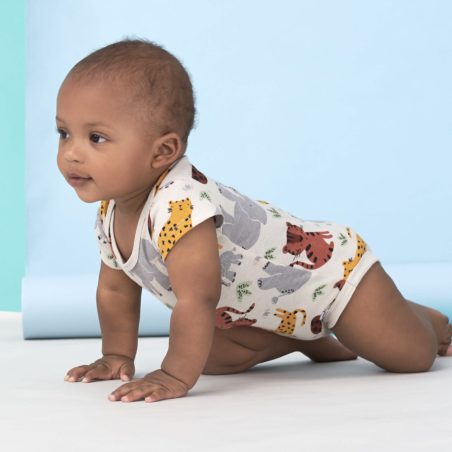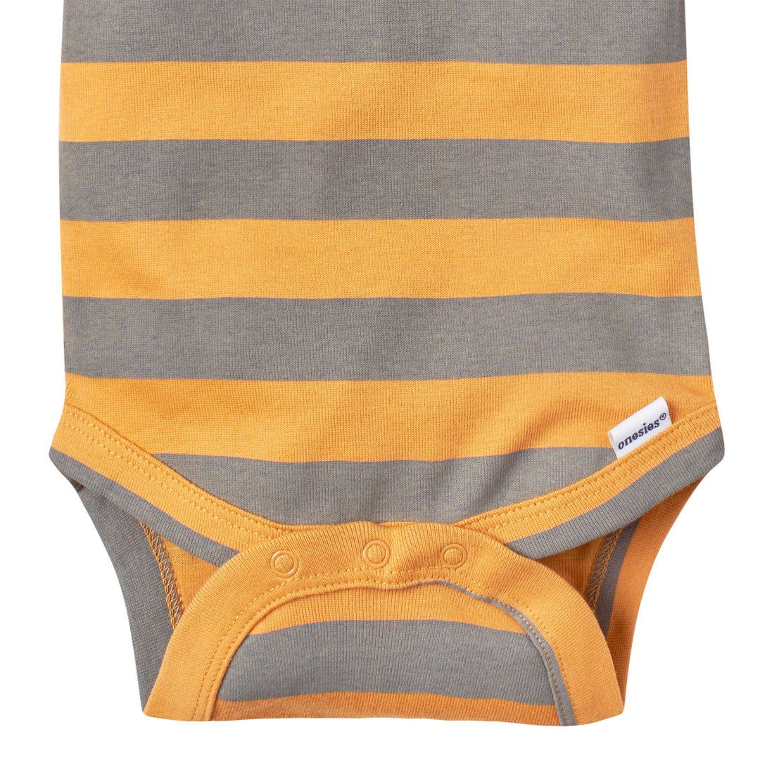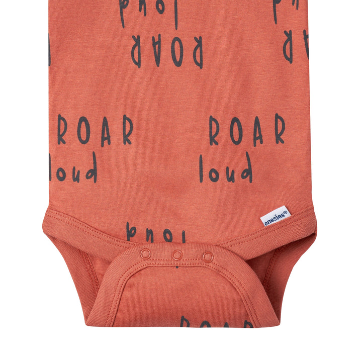 Our Onesies® bodysuits are an essential part of every baby’s wardrobe! Each one is made with soft cotton, a gentle fabric that’s perfect for your baby’s sensitive skin. Our essentials have been independently certified with STANDARD 100 by OEKO-TEX® so that you don’t have to worry about harmful substances in your baby’s wardrobe. Our bodysuits feature expandable lap shoulder necklines and high-positioned snaps for easy and quick diaper and wardrobe changes. Each baby boy bodysuit or baby girl bodysuit is machine washable and machine dryable for your convenience. This pack includes five safari themed short sleeve bodysuits.