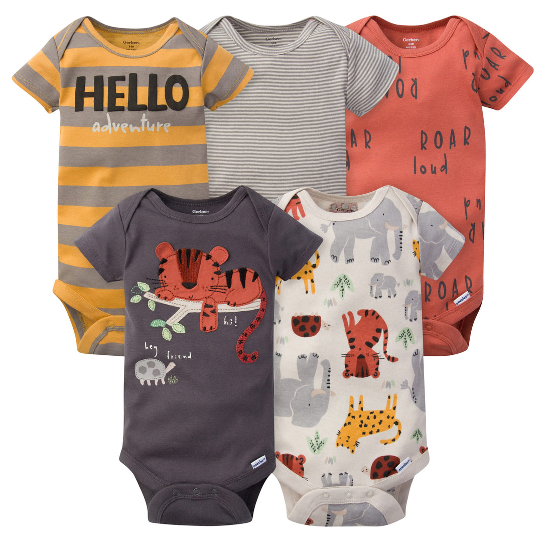 5-Pack Baby Boys Safari Short Sleeve Onesies® Bodysuits