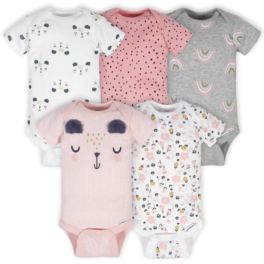5-Pack Baby Girls Bear Short Sleeve Onesies® Bodysuits