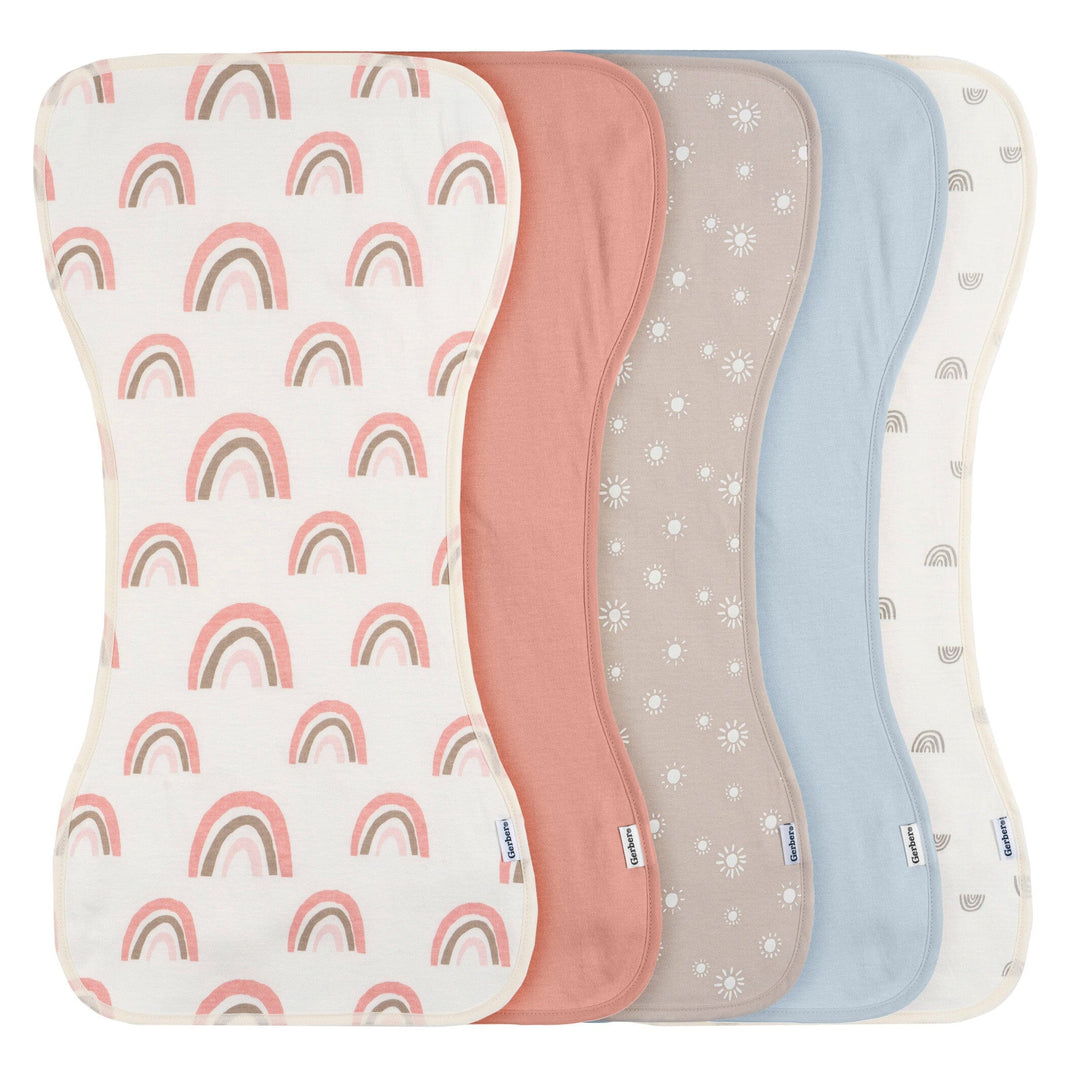 5-Pack Baby Girls Pink Rainbows Jersey Burp Cloths