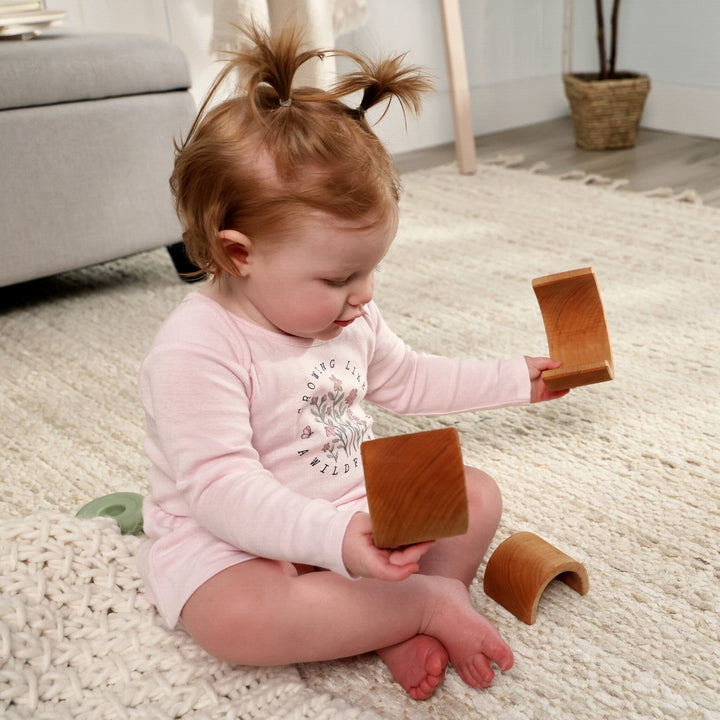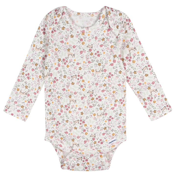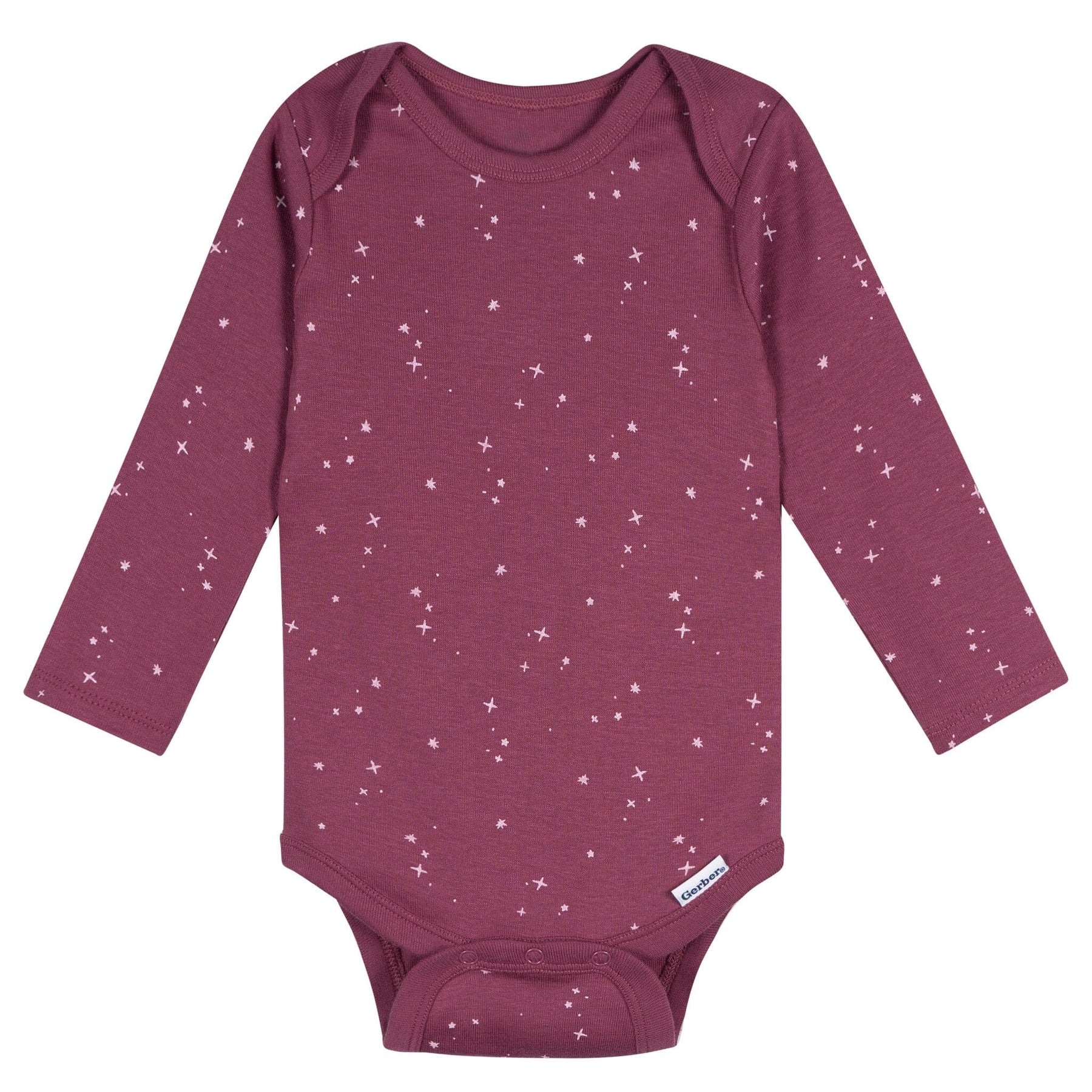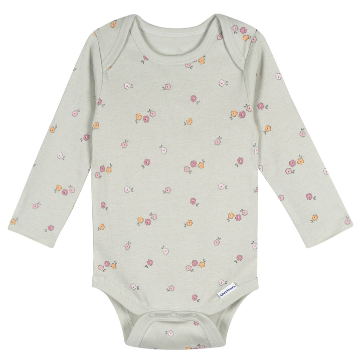 Stock up on all-day cozy with this 5-pack of long-sleeve bodysuits featuring the sweetest multi-color flower prints and soft solids! Made from 100% cotton, these bodysuits are oh-so-soft and gentle on your baby’s delicate skin. The lap shoulder neckline makes outfit changes easy (because we all know messes happen), and the leg snaps keep diaper swaps quick and simple. With long sleeves for extra snuggly warmth, these bodysuits are perfect for layering or wearing solo. Cute, comfy, and totally essential—because one bodysuit is never enough! Our essentials have been independently certified with STANDARD 100 by OEKO-TEX® so that you don’t have to worry about harmful substances in your baby’s wardrobe. Pack includes five bodysuits.
