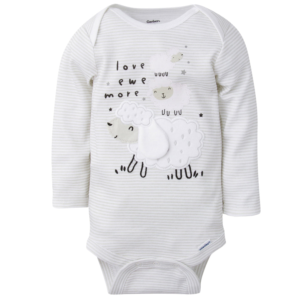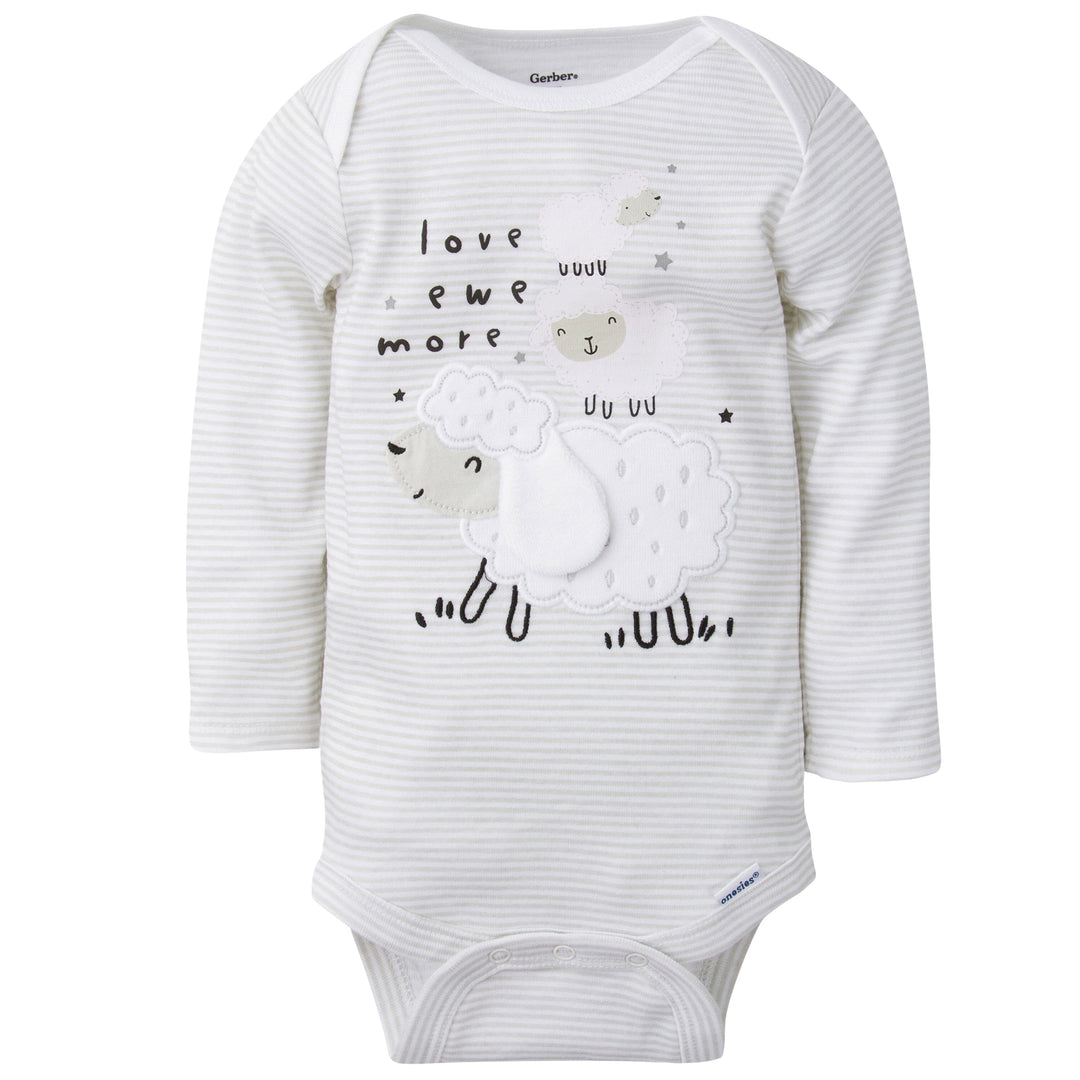Our Onesies® bodysuits are an essential part of every baby’s wardrobe! Each one is made with soft cotton, a gentle fabric that’s perfect for your baby’s sensitive skin. Our essentials have been independently certified with STANDARD 100 by OEKO-TEX® so that you don’t have to worry about harmful substances in your baby’s wardrobe. Our bodysuits feature expandable lap shoulder necklines and high-positioned snaps for easy and quick diaper and wardrobe changes. Each baby boy bodysuit or baby girl bodysuit is machine washable and machine dryable for your convenience. This pack includes five lamb printed long sleeve bodysuits.