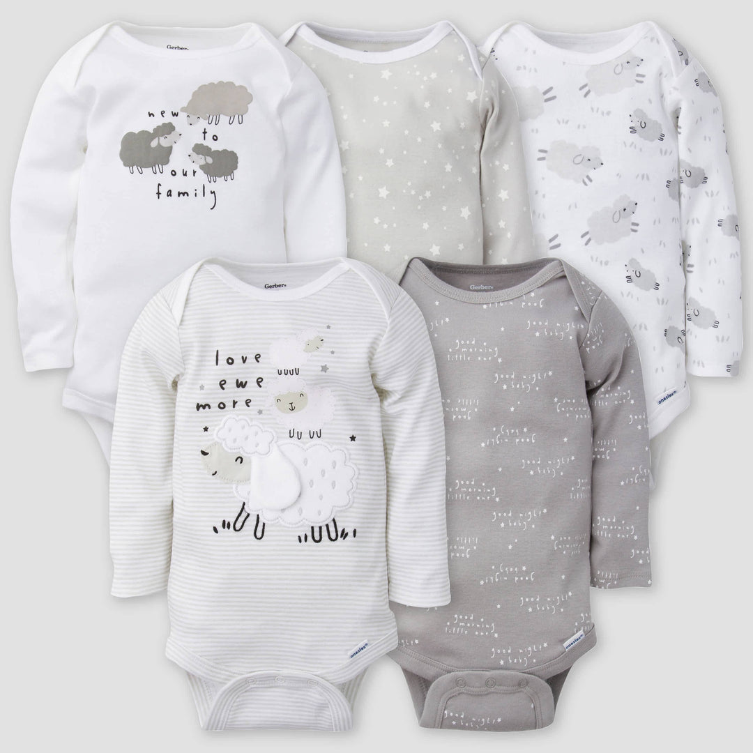 5-Pack Baby Neutral Lamb Long Sleeve Onesies® Bodysuits