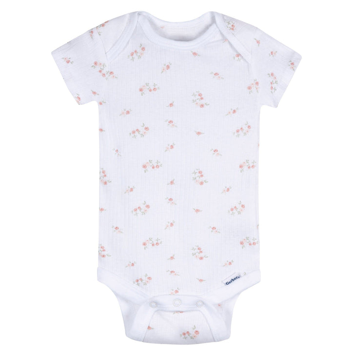 Add comfort and style to your baby girl’s wardrobe with this versatile 5-piece set. Crafted from ultra-soft 100% cotton, it’s perfect for keeping her skin comfortable and breathable all day. The lap shoulder neckline and snap closures on the bodysuits make dressing and diaper changes a breeze, while the pants’ comfort-stretch waistband provides a snug, flexible fit. The cinched ankle cuffs help keep the pants in place, offering extra warmth and security. With three bodysuits and two pairs of pants, this set is ideal for mixing and matching for both playtime and naps. Plus, it’s made with Better Cotton™, supporting eco-friendly farming for a healthier world. Our essentials have been independently certified with STANDARD 100 by OEKO-TEX® so that you don’t have to worry about harmful substances in your little one’s wardrobe. Pack includes three bodysuits with two matching pants.