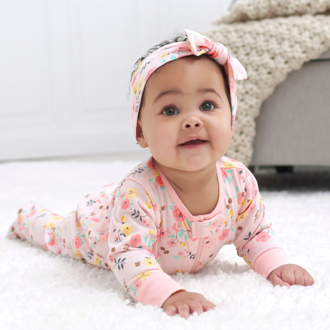 Our Sleep ‘n Plays are the perfect any-time, any-activity outfit! Each piece is made with cotton, a super soft fabric that you and your little one will adore. We had this product independently certified with STANDARD 100 by OEKO-TEX® so that you don’t have to worry about harmful substances in your baby’s everyday essentials. They feature front zippers that make wardrobe changes and diaper changes easy peasy. The zippers also feature a safety tab at the top. This set also features coordinating headbands with adorable bows that add something special to any outfit. Our Sleep ‘n Plays are great casual outfits, perfect for playdates, and they also make excellent baby pajamas. Give this bundle as a thoughtful and practical baby shower gift that the parents-to-be are sure to appreciate. This set includes two Sleep ‘n Plays and three headbands. Each piece is machine washable and machine dryable for your convenience.