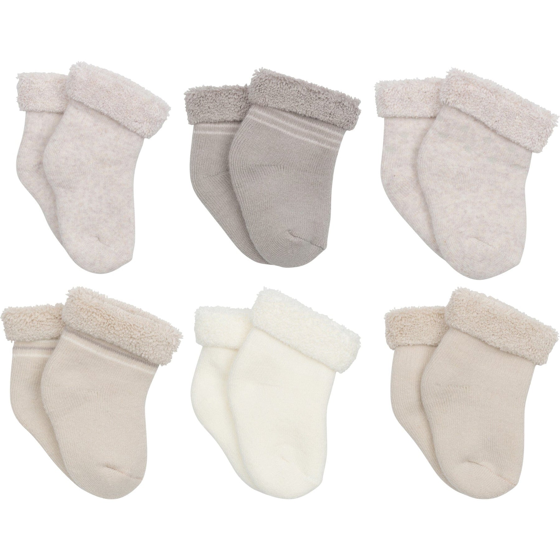 Our Wiggle Proof® socks are super soft and stretchy, perfect for tiny toes! Each one is made with soft cotton, a gentle fabric that's perfect for your baby's sensitive skin. We use STANDARD 100 by OEKO-TEX® certification on products tested in an independent laboratory against a list of more than 400 harmful substances, including PFAS. Our baby socks feature Wiggle Proof® technology to keep them held gently and securely in place without leaving marks on your little one's calves. Each pair of baby boys' socks are machine washable and machine dryable for your convenience. This pack includes six pairs of neutral toned baby socks.