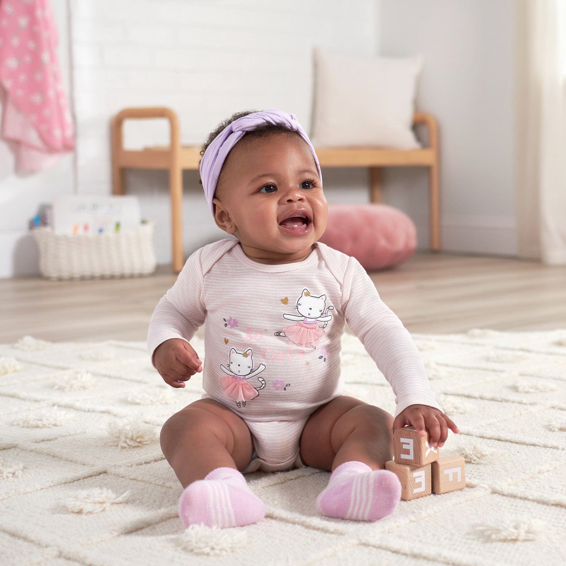 Our Wiggle Proof® socks are super soft and stretchy, perfect for tiny toes! Each one is made with soft cotton, a gentle fabric that’s perfect for your baby’s sensitive skin. We use STANDARD 100 by OEKO-TEX® certification on products tested in an independent laboratory against a list of more than 400 harmful substances, including PFAS. Our baby socks feature Wiggle Proof® technology to keep them held gently and securely in place without leaving marks on your little one’s calves. Each pair of baby boys' or baby girls' socks are machine washable and machine dryable for your convenience. This pack includes six pairs of ballerina themed baby socks.