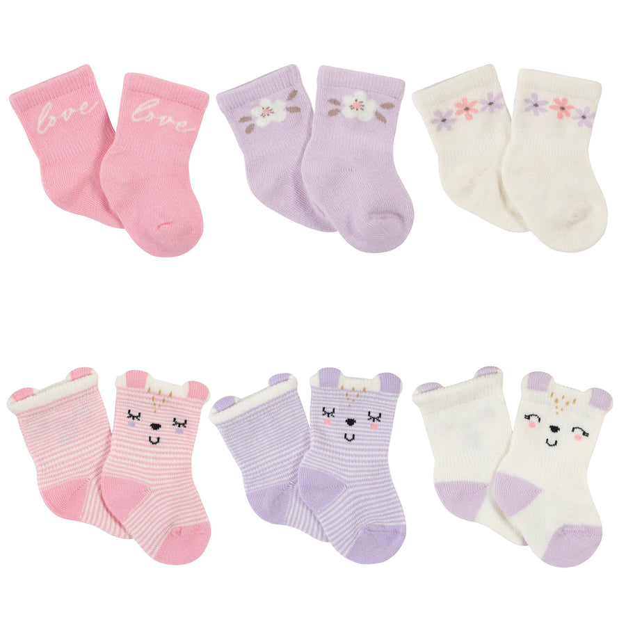 6-Pack Baby Girls Bunny Ballerina Wiggle Proof® Jersey Crew Socks