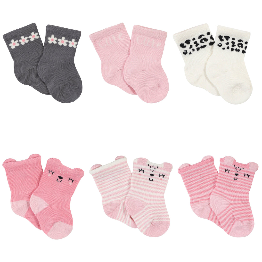6-Pack Baby Girls Leopard Wiggle Proof® Jersey Crew Socks