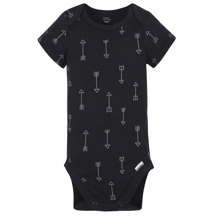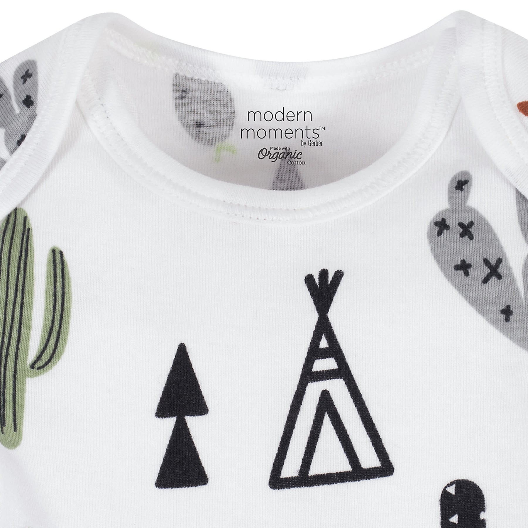Modern Moments by Gerber®. Modern sophistication made with the quality and value you expect from us. Add a modern flair to your baby’s wardrobe with our stylish and practical outfit sets. This set includes two Onesies® bodysuits, two pairs of pants, and two bandana bibs. The bodysuits feature expandable lap shoulder necklines and high-positioned bottom snaps, so changes are easier than ever. The harem pants feature gentle elastic waistbands for easy on and off and to keep your little one’s tummy comfy. You’ll love the stylish look of the bandana bibs and your baby will love how soft they are. We use STANDARD 100 by OEKO-TEX® certification on products tested in an independent laboratory against a list of more than 400 harmful substances, including PFAS. The soft fabric is made with cotton with organic fibers for a healthy planet and happy baby. This set is machine washable and dryable.