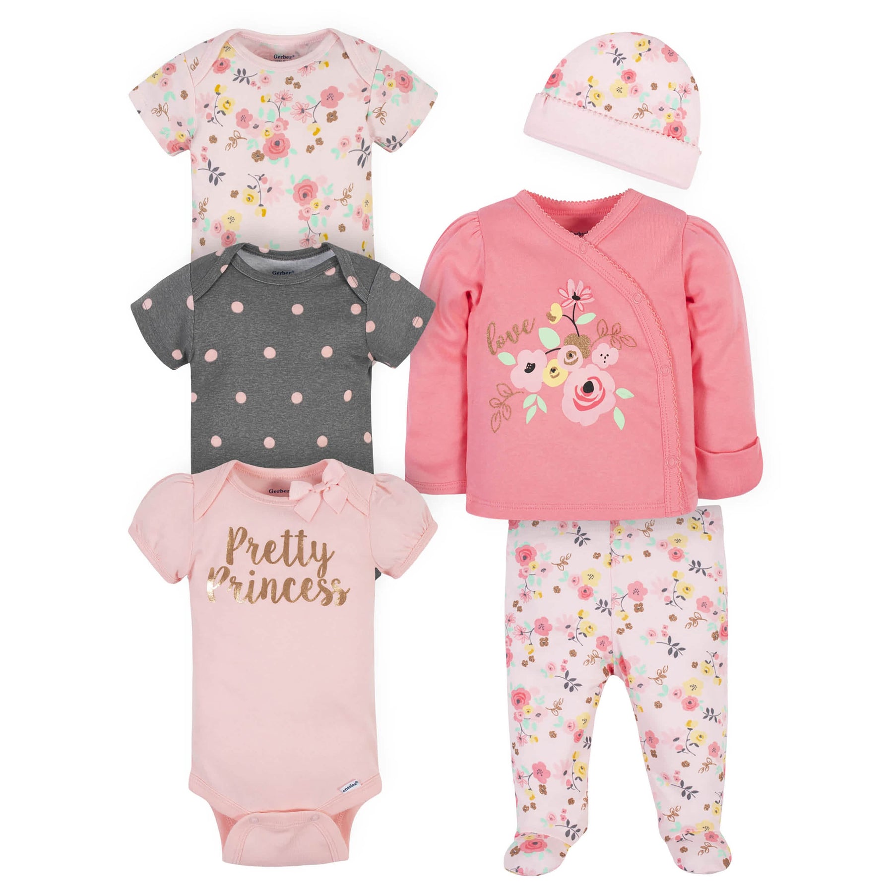 6-Piece Baby Girls Love You Onesies® Bodysuits & Take-Me-Home Set