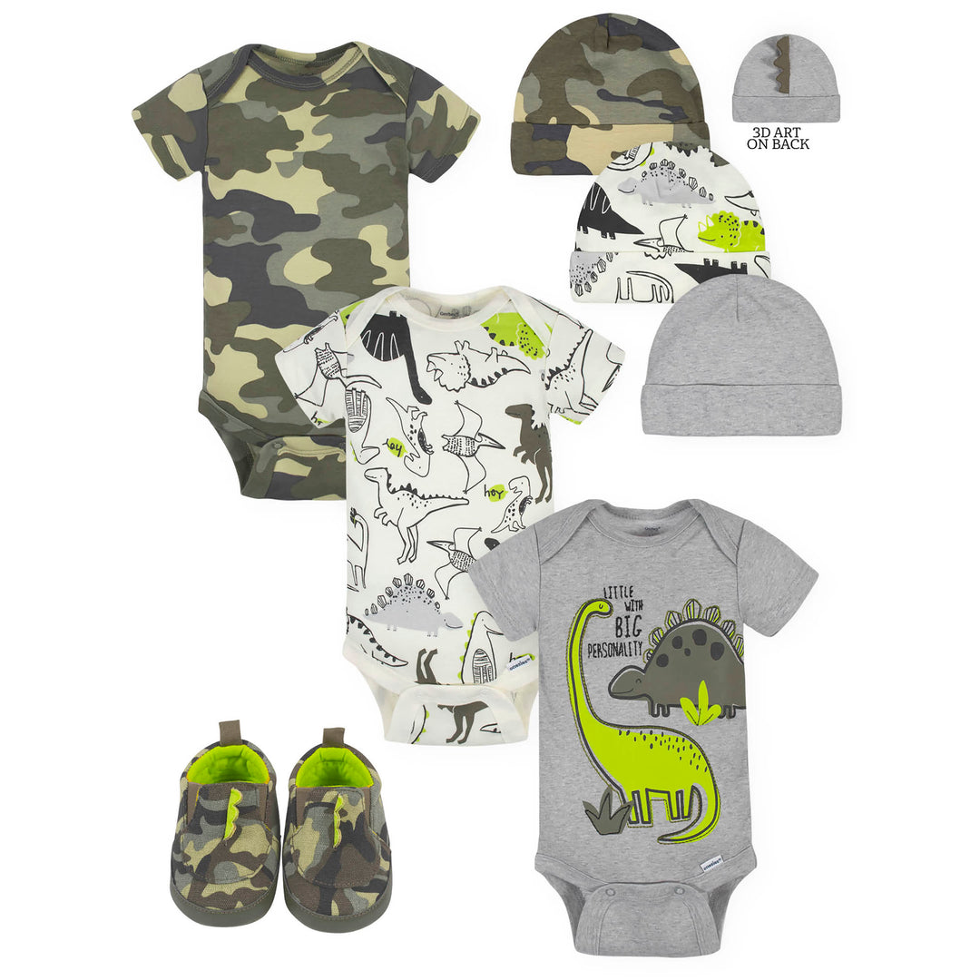 7-Piece Baby Boys Dino Onesies® Bodysuits, Caps, & Shoes Set
