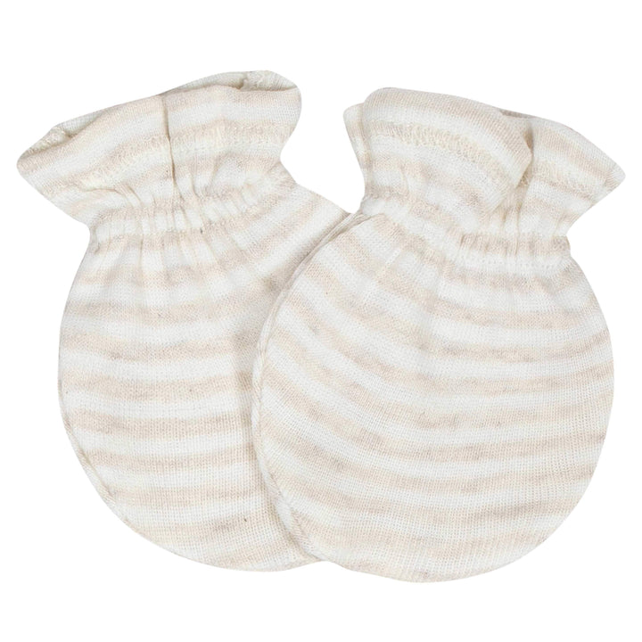 Our caps and mittens set is the perfect way to keep baby cozy warm and free of scratches. Each piece in this is made with soft, breathable cotton rib. We had this product independently certified with STANDARD 100 by OEKO-TEX® so that you don’t have to worry about harmful substances in your baby’s clothing. Our caps feature a soft cuff to keep baby comfy all day long, and the mittens feature gentle elastic wristbands that hold them securely, yet comfortably, in place. Hate trying to trim your baby’s nails? Does baby accidentally scratch themselves? Our no scratch mittens are the solution you’ve been looking for. They’re safe to wear during the day as well as at night to keep baby’s sweet face free of scratches. Each piece in this set is machine washable and dryable. This set contains four baby hats and four pairs of baby no scratch mittens.