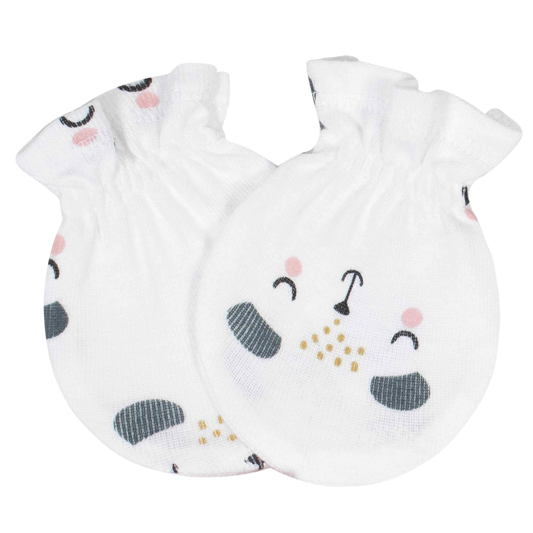 Our caps and mittens set is the perfect way to keep baby cozy warm and free of scratches. Each piece in this is made with soft, breathable cotton rib. We had this product independently certified with STANDARD 100 by OEKO-TEX® so that you don’t have to worry about harmful substances in your baby’s clothing. Our caps feature a soft cuff to keep baby comfy all day long, and the mittens feature gentle elastic wristbands that hold them securely yet comfortably in place. Hate trying to trim your baby’s nails? Does baby accidentally scratch themselves? Our no scratch mittens are the solution you’ve been looking for. They’re safe to wear during the day, as well as at night, to keep baby’s sweet face free of scratches. Each piece in this set is machine washable and dryable. This set contains four baby hats and four pairs of baby no scratch mittens.