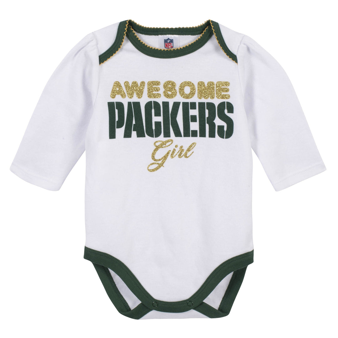 3-Piece Baby Girls Green Bay Packers Bodysuit, Footed Pant, and Cap Set