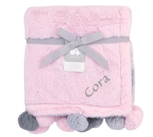 Embroidered Cuddle Plush Pom Pom Blanket in Pink