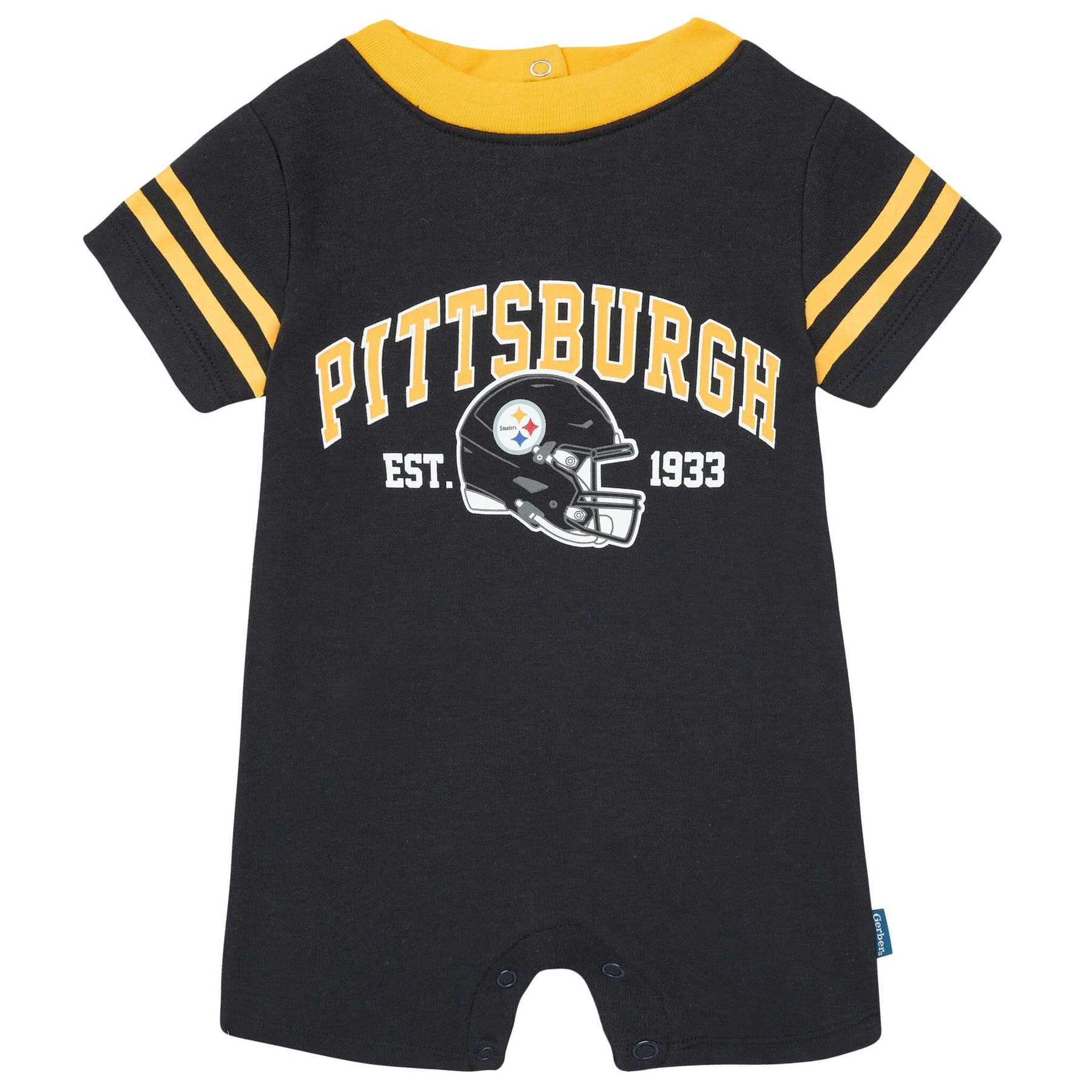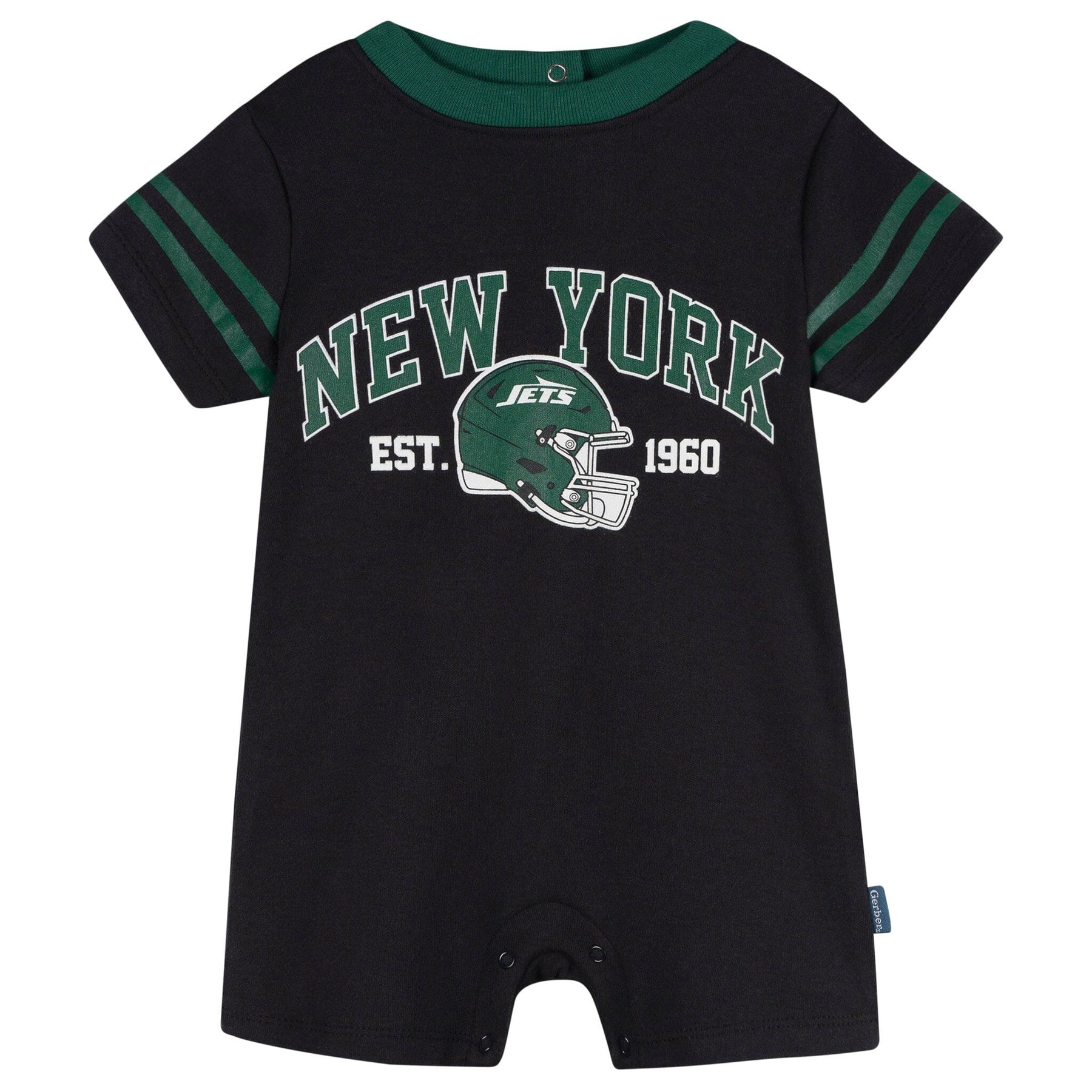 Your little fan is ready to cheer on their team in this soft, stretchy one-piece. Designed for comfort, it features a flexible fit that moves with your baby during every kick, wiggle, and roll. The short sleeves and legs are perfect for warmer days, and the easy-to-use snaps at the rear neckline and legs make diaper changes a breeze. Whether watching the game at home or heading out to show off their team pride, your little one will be ready to rep their team in style. Our essentials are independently certified with STANDARD 100 by OEKO-TEX, so you don’t have to worry about harmful substances in your little one's wardrobe. Includes one romper.